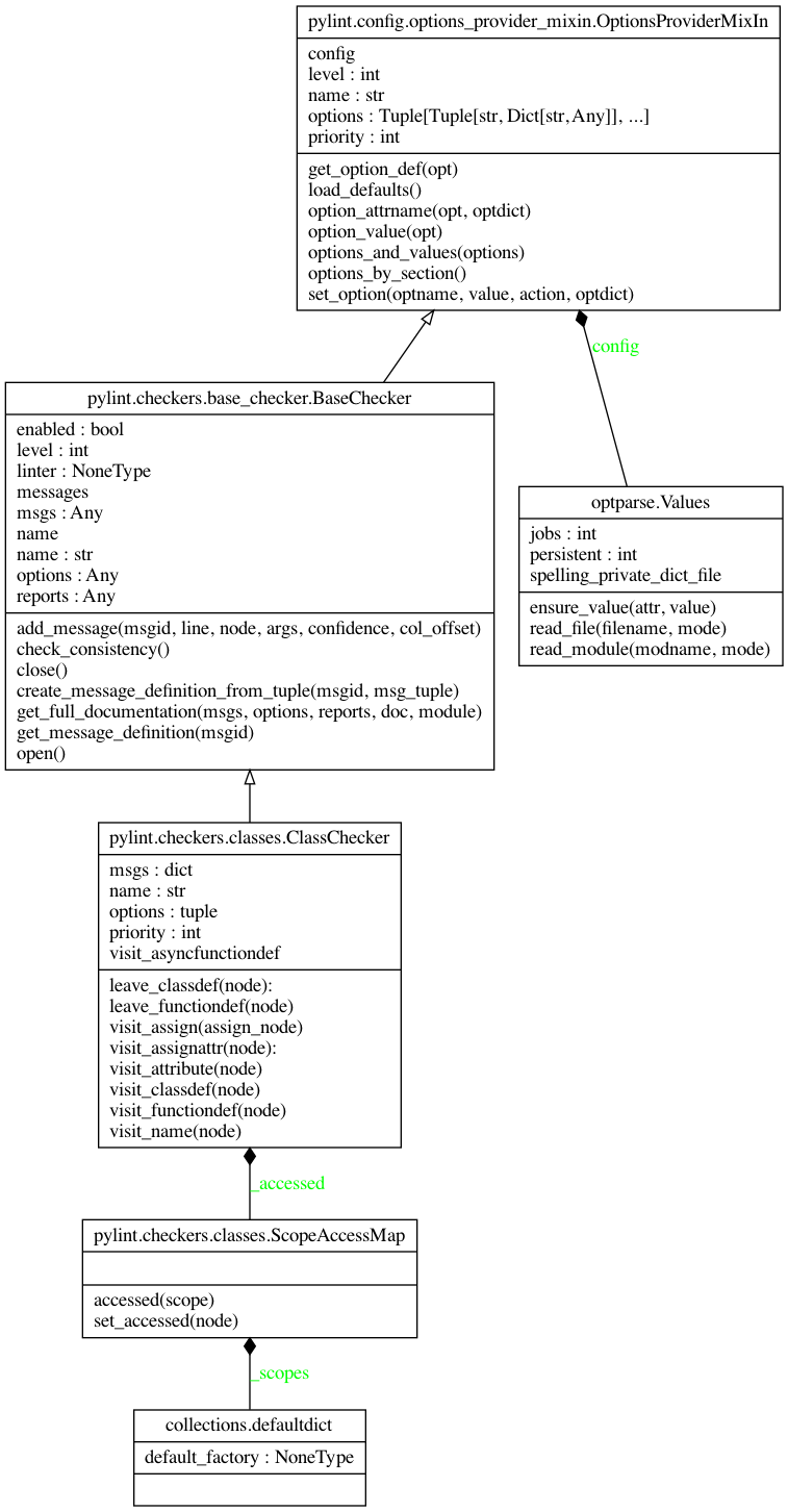 , but will additionally generate a file pylint.checkers.classes.ClassChecker.dot